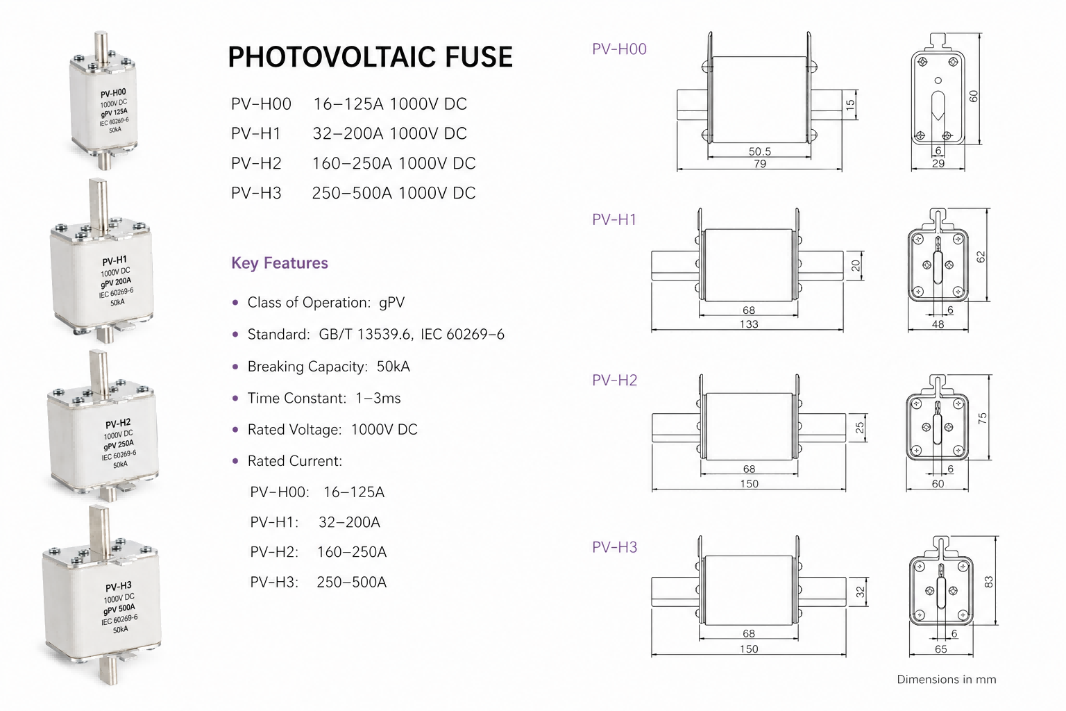 Manufactured to rigorous specifications and fully certified, ensuring fast and reliable interruption of fault currents under harsh DC conditions, protecting your PV system investment.